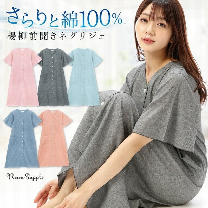 ネグリジェ 前開き パジャマ ワンピース 綿100 夏 半袖 ロング 楊柳素材 無地 レディース 袖フレア 産前 産後 授乳 ポケット付き ルームサプリ M L Ll W1 通販 Lineポイント最大0 5 Get Lineショッピング